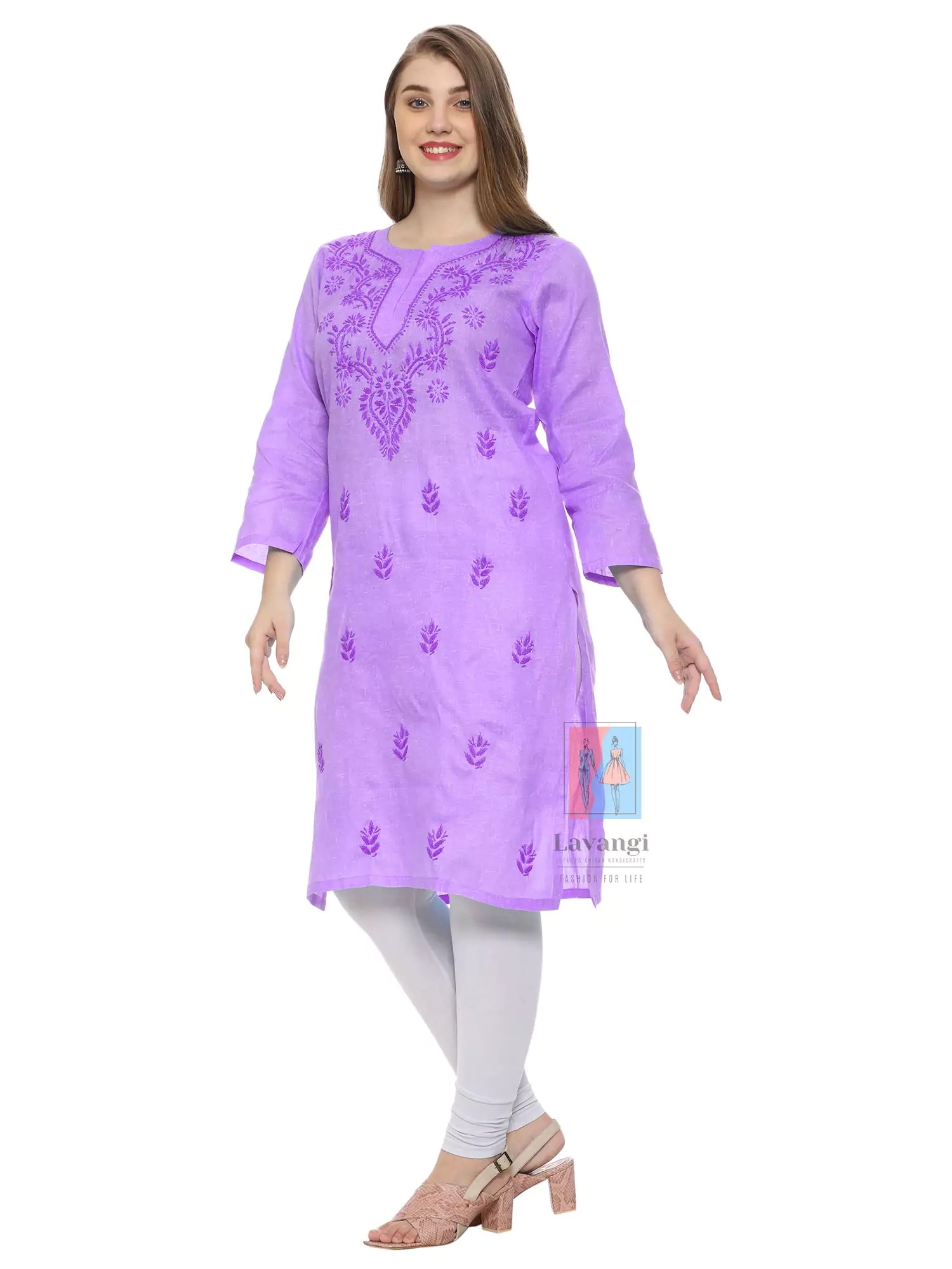 Offering a Comfortable fit and exhibiting a subtle appeal, this Lucknow Chikankari Mauve Jute Cotton Ghaas Patti Embroidery Kurti in various solid colours from LAVANGI are something you can’t give a miss.